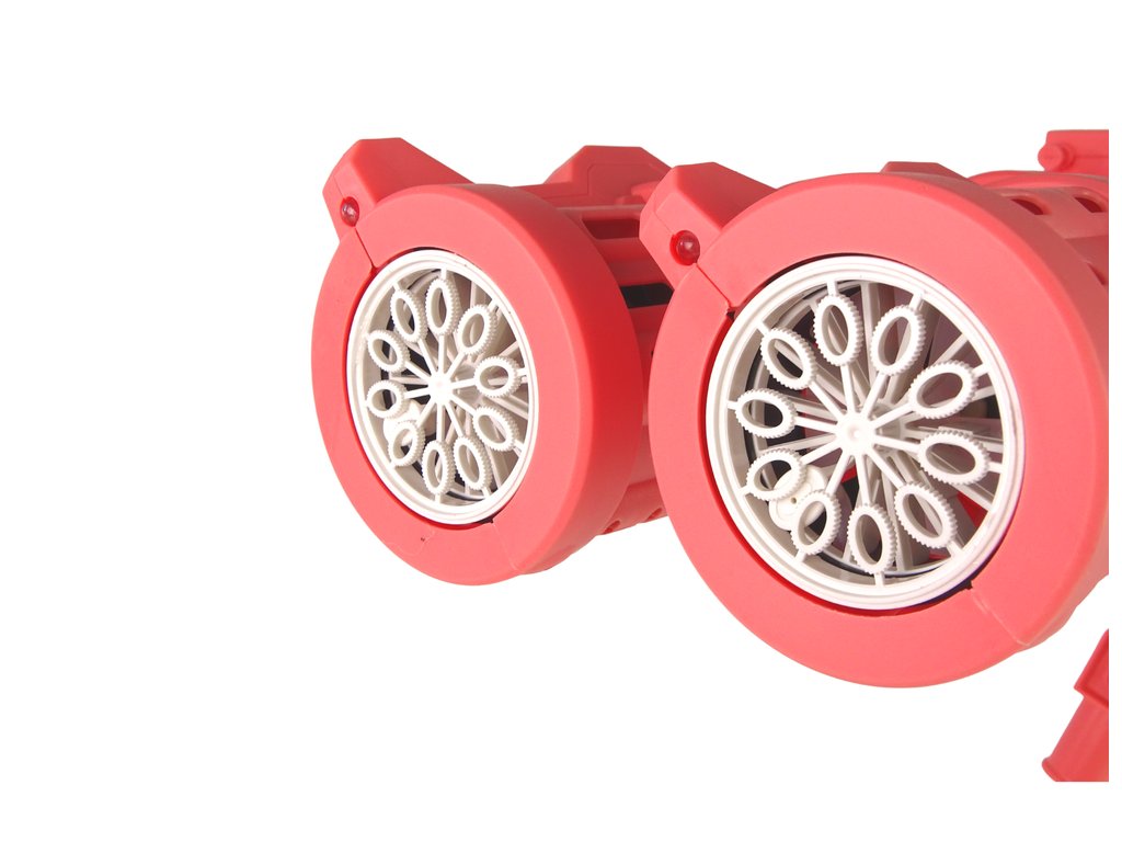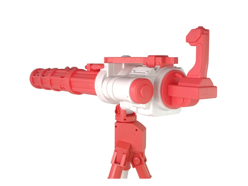 Stativ je nastavitelný, takže pistoli lze pohodlně přizpůsobit výšce každého dítěte. Díky speciální rukojeti drží pistole jistě v dětských rukou, zatímco horní páka umožňuje vytvářet efektní bublinové scenérie. 🎉