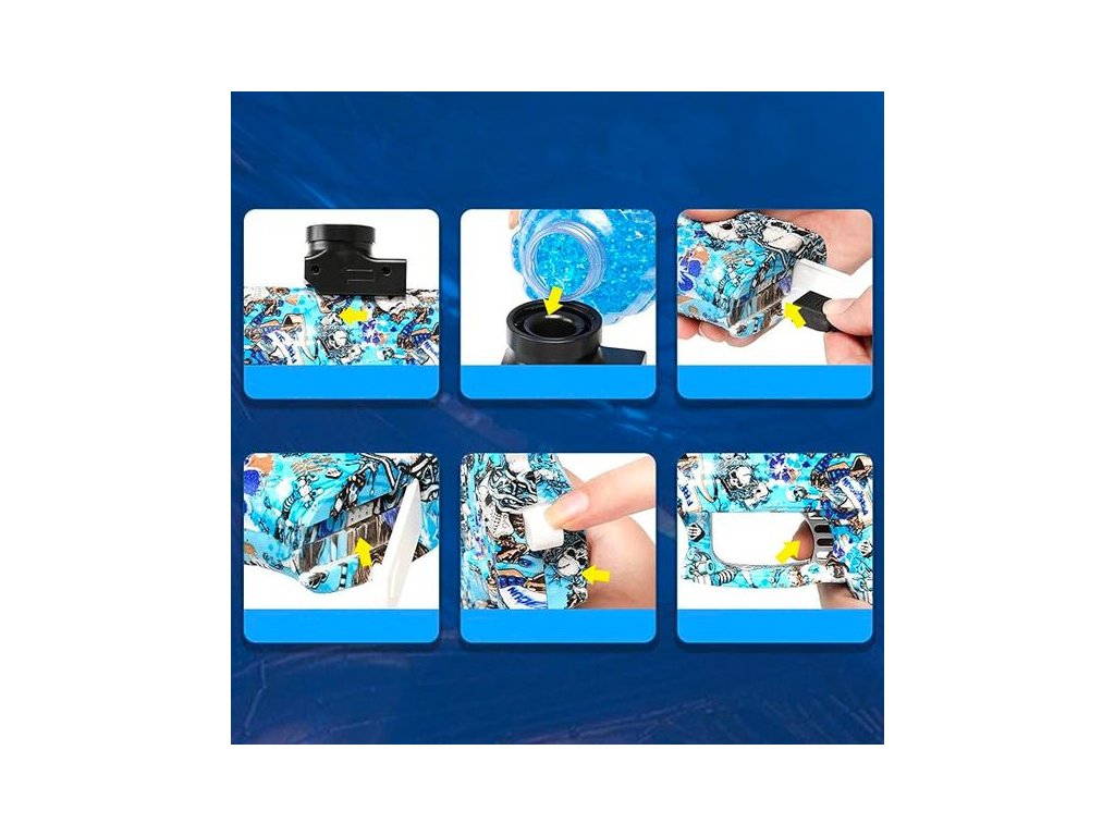 ➡️ Namočíte speciální gelové kuličky, které nasáknou vodu a po 4 hodinách jsou připravené ke střelbě.