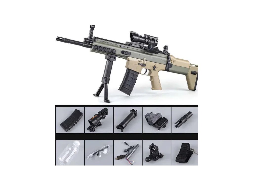- Zbraň SCAR Gel Blaster.