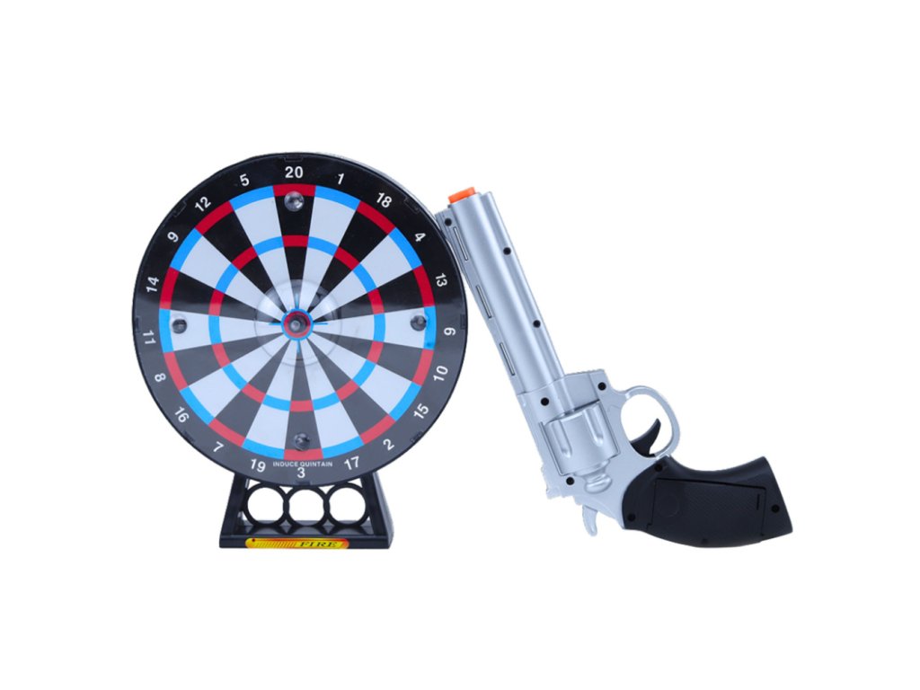 Každý úspěšný zásah se potvrdí světelným a zvukovým efektem, což dodává hře napětí a děti to vždy motivuje ke zlepšování. Terč lze postavit na stojánek nebo pověsit na zeď. Revolver má dosah až 30 metrů, takže se hodí jak domů, tak na venkovní hraní. 💥