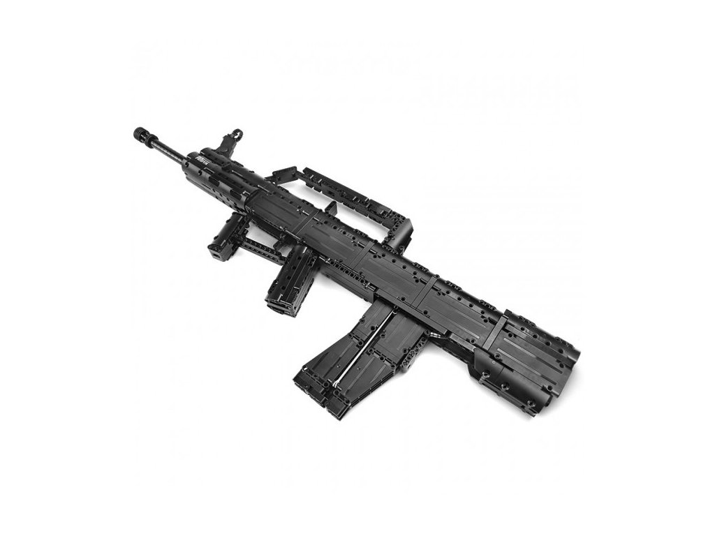 Stavebnice modelu lehké útočné pušky QBZ-95 v měřítku 1:1. Pevné zpracování, dokáže vystřelit plastový projektil na krátkou vzdálenost — ideální pro sběratele i hraní. 🎯