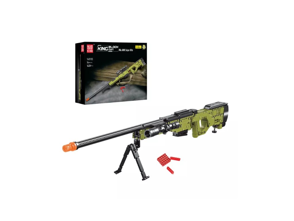 Sestav si vylepšenou AWM — verze S z 1 628 dílků podle přehledného návodu 🧩. Model je kvalitně zpracovaný, má velmi realistický vzhled a funkční pohyblivý nabíjecí uzávěr, takže působí věrně jako opravdová zbraň — ideální jak na hraní, tak na vystavení. 🖼️